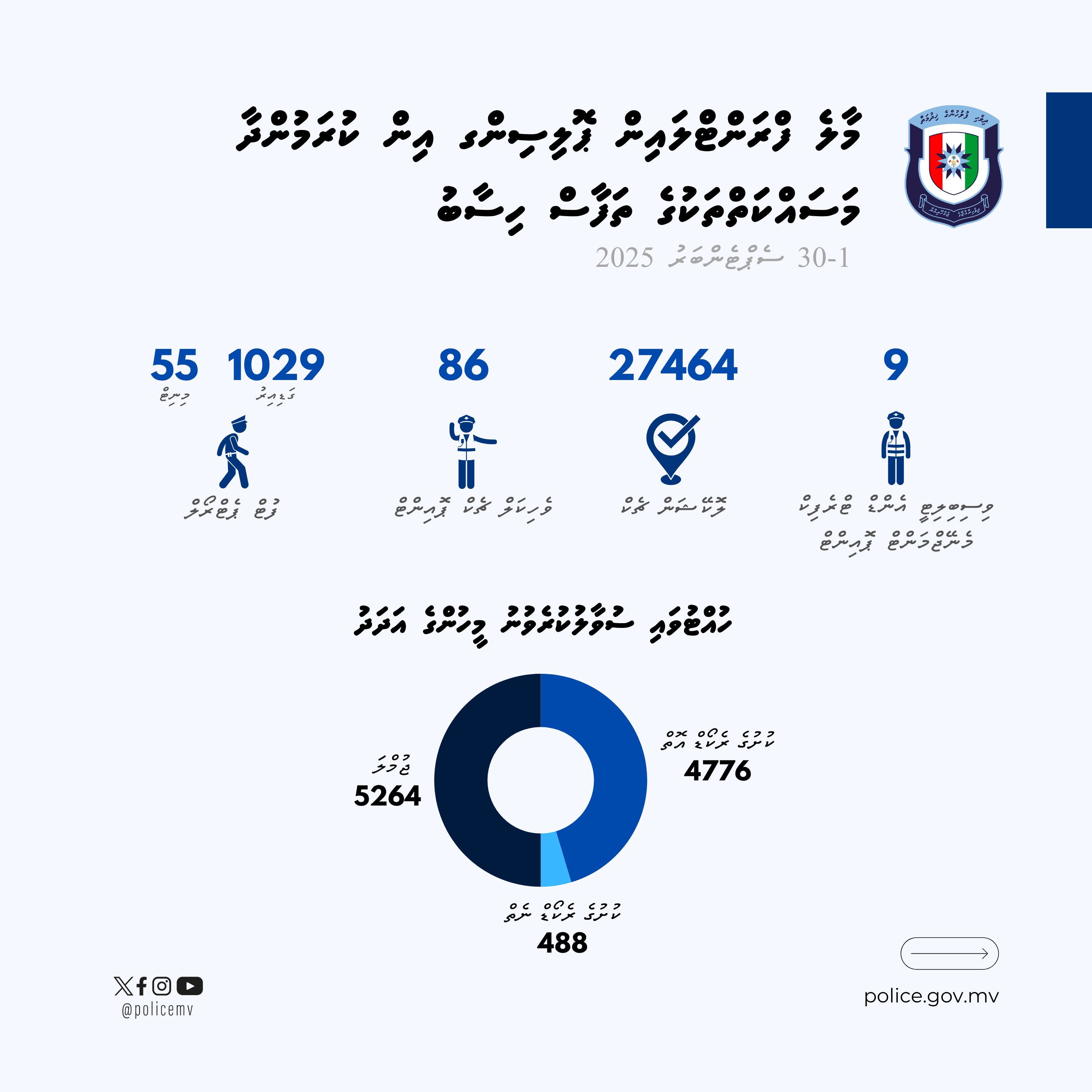 އަދި ޖުމްލަ 5،264 ސައިކަލު ހުއްޓުވައިގެން ސުވާލުކޮށްފައިވާއިރު، މީގެތެރޭގައި ކުށުގެ ރެކޯޑު އޮތް 488 މީހުން ހިމެނެއެވެ.