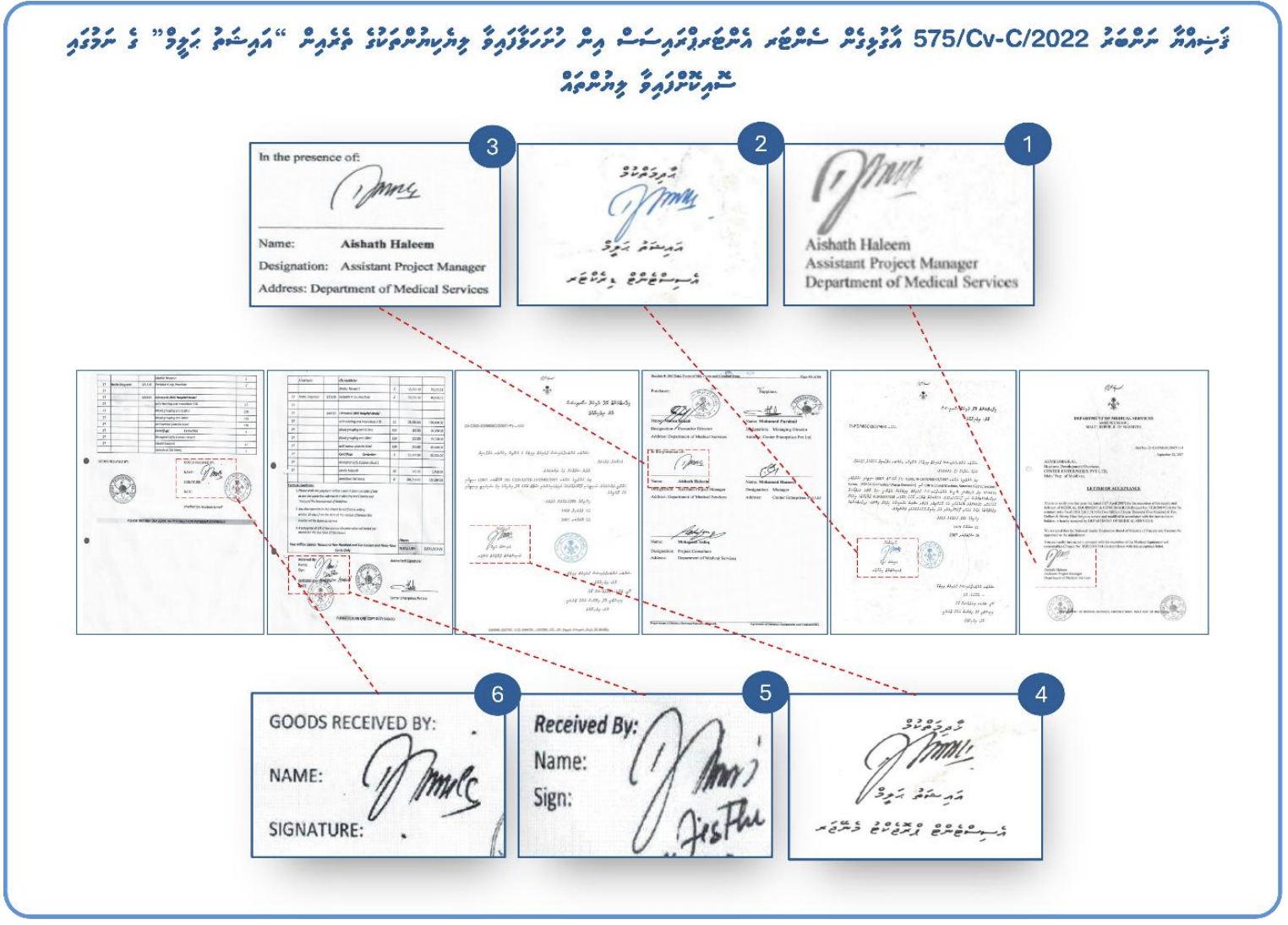 - ޑީއެމްއެސްގެ ފަރާތުން ސޮއިކޮށްފައި ހުރި "އައިޝަތު ޙަލީމް" ނަމަކަށް ކިޔާ މީހަކީ ދުވަހަކު ވެސް އެ އޮފީހުގައި މަސައްކަތްކުރި މީހަކަށް ނުވުން
