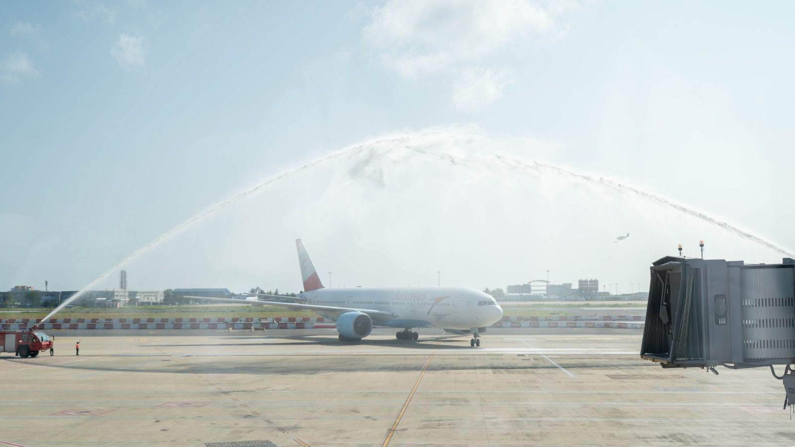 ވީއައިއޭގެ އައު ޓާރމިނަލުން އޮސްޓްރިއަން އެއާރލައިންސްއަށް ޚިދުމަތް ދޭން ފެށުން ފާހަގަކުރުން / ފޮޓޯ: އެމްއޭސީއެލް