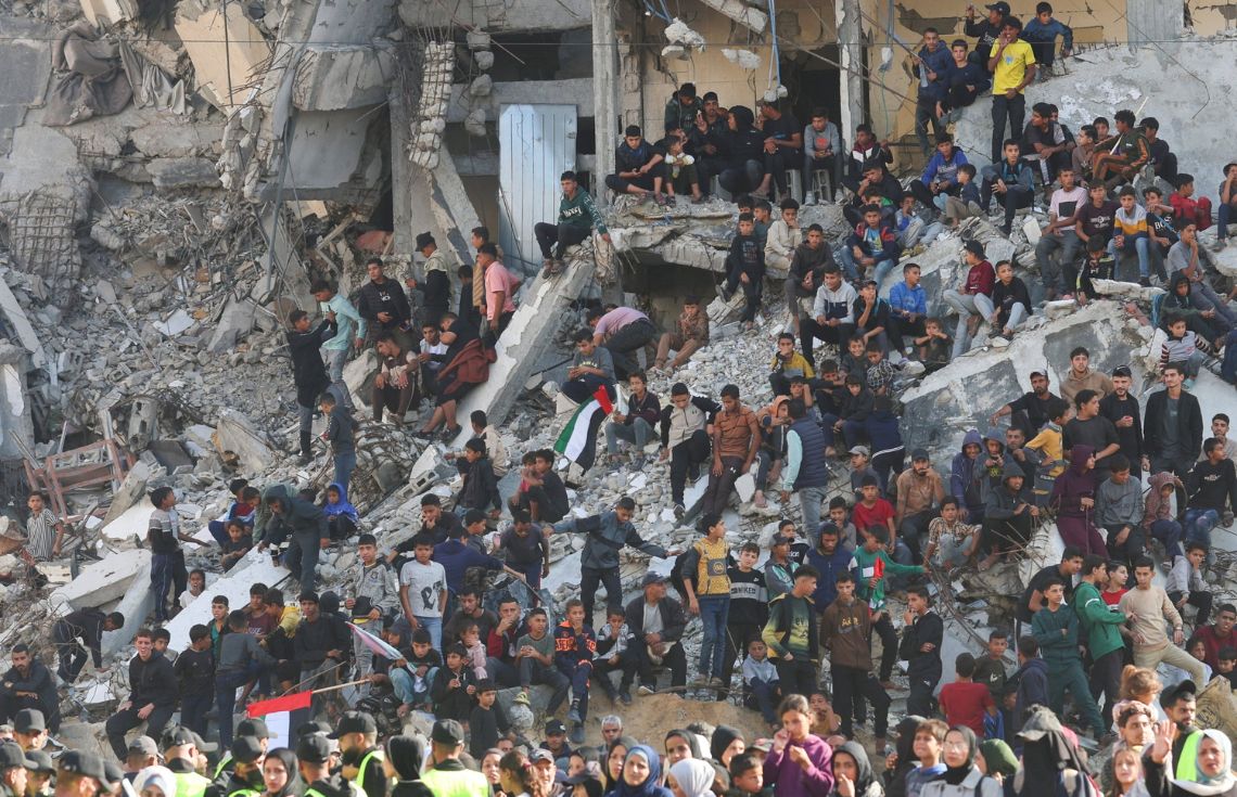 ދެ އަހަރު ދުވަހުގެ އަނިޔާވެރިކަމާއި މަރާއި ހަލާކާއި ވޭނާއި ކެކުޅުމަށްފަހު ޣައްޒާގައި 54 މީހުންގެ ކައިވެނީގެ ހަފްލާއެއް ބާއްވައިފި!