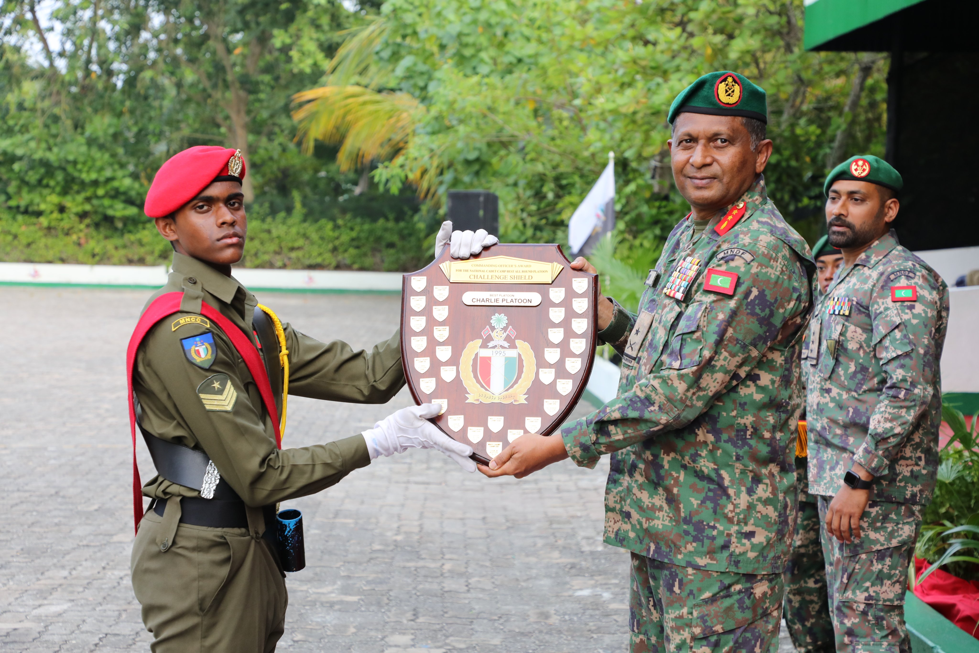 މި ރަސްމިއްޔާތުގައި ވަނަވަނަ އަށް ހޮވުނު ކެޑޭޓުންނަށް ތަށްޓާއި ޝީލްޑް ހަވާލުކޮށްދެއްވީ، ޗީފް އޮފް ޑިފެންސް ފޯސް، މޭޖަރ ޖެނެރަލް އިބްރާހީމް ޙިލްމީއެވެ. އެގޮތުން، 25 ވަނަ ޤައުމީ ކެޑޭޓް ކޭމްޕްގެ އެންމެ މޮޅު ފިރިހެން ކެޑޭޓްގެ މަޤާމާއި އެކަޑެމިކް މާއްދާތަކުން އެންމެ މޮޅު ކެޑޭޓްގެ މަޤާމު ހާސިލުކުރީ، ތާޖުއްދީން ސްކޫލުގެ ކެޑޭޓް ކޯޕްރަލް ނާވީ ޙުސައިންއެވެ. އަދި އެންމެ މޮޅު އަންހެން ކެޑޭޓްގެ މަޤާމު ހަނިމާދޫ ސްކޫލުގެ ކެޑޭޓް ކޯޕްރަލް އަޒްކާ އަހްމަދު ޙަމީދު ހާސިލުކޮށްފައިވާއިރު، އެންމެ މޮޅު ޕްލެޓޫންގެ މަޤާމު ހާސިލުކުރީ ޗާލީ ޕްލެޓޫންއެވެ.