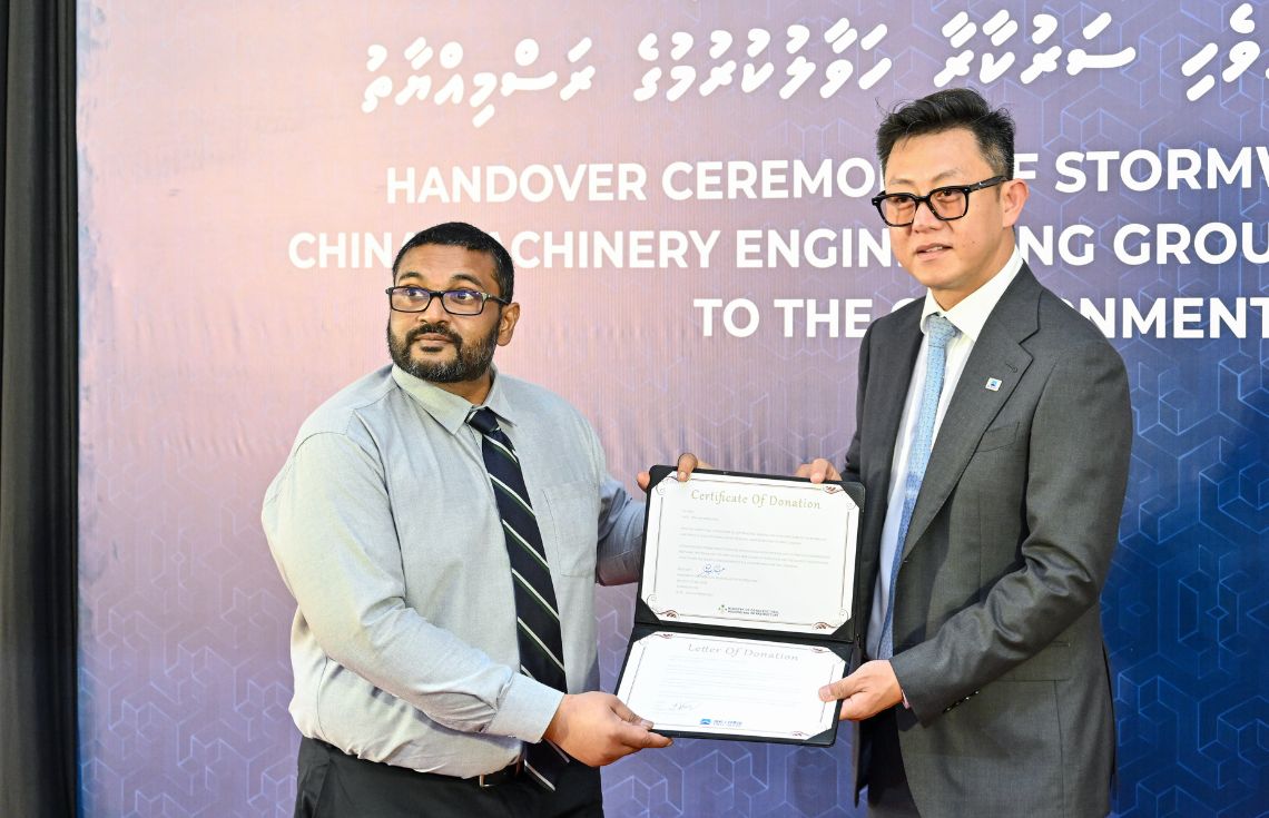 މިއަދު ހުޅުމާލެ ސެންޓްރަލް ޕާކުގައި ބޭއްވި ޚާއްސަ ރަސްމިއްޔާތެއްގައި، ޗައިނާ މެޝިނަރީ އިންޖިނިއަރިންގ ގްރޫޕް ކޯރޕަރޭޝަން ލިމިޓެޑް ގެ ފަރާތުން ރާއްޖެއަށް ފެންހިންދާ ޕަމްޕްތަކެއް ވަނީ ހަދިޔާކޮށްފައެވެ. މި ރަސްމިއްޔާތު ޝަރަފްވެރިކޮށްދެއްވައި، ރާއްޖެއަށް ލިބުނު މި އެހީއަށް ޝުކުރު އަދާކުރެއްވީ ރައީސުލްޖުމްހޫރިއްޔާ ޑރ. މުޙައްމަދު މުޢިއްޒުއެވެ.